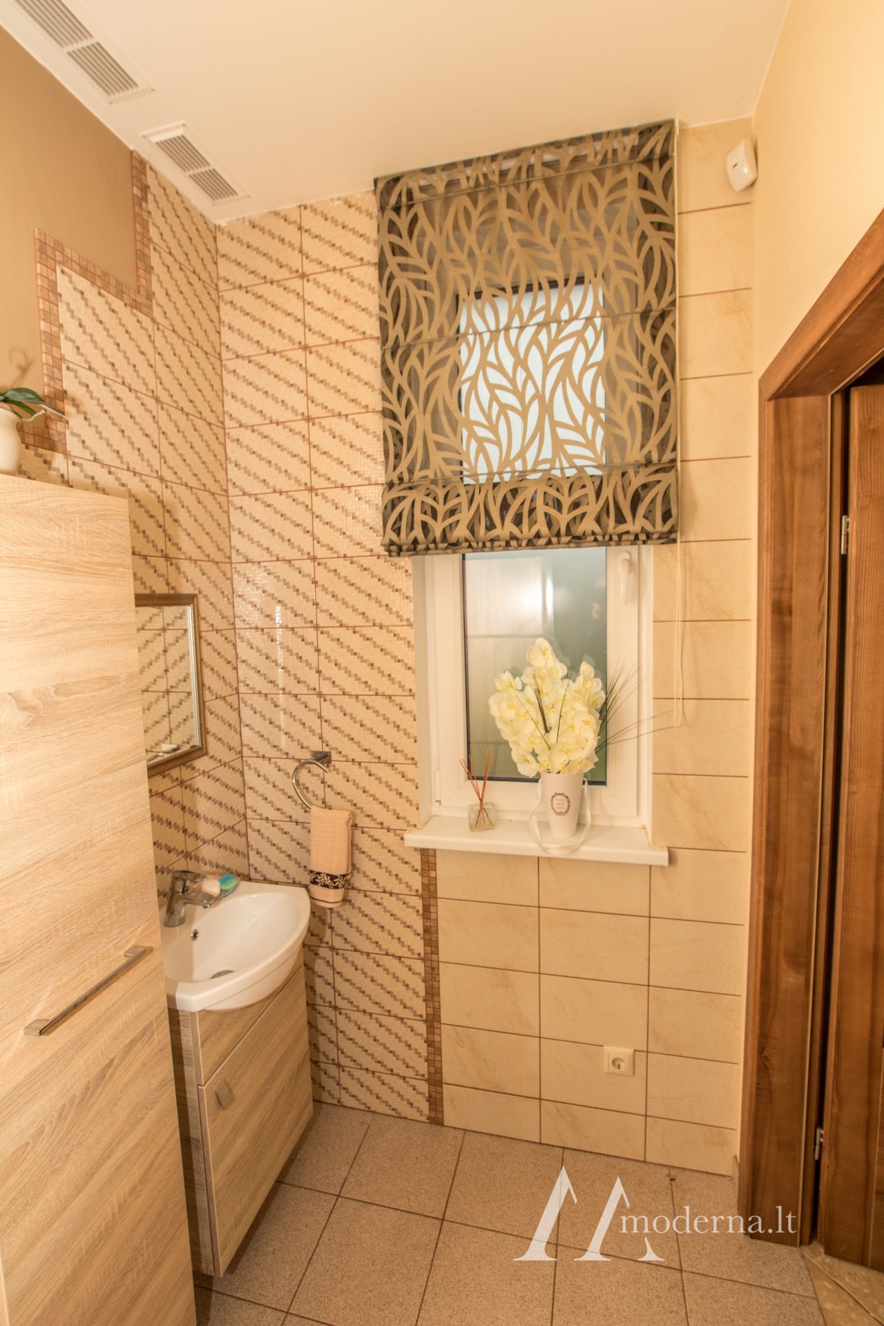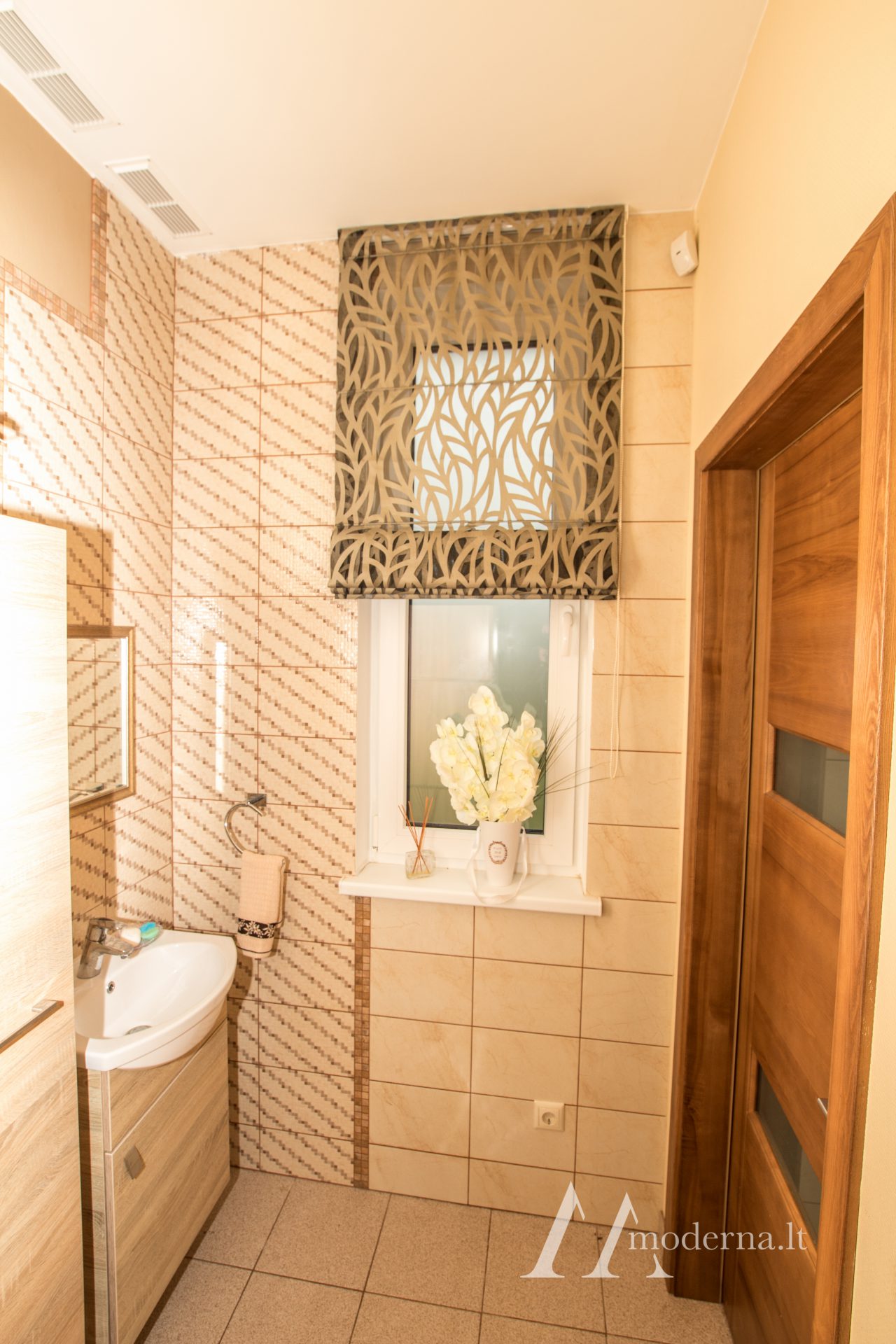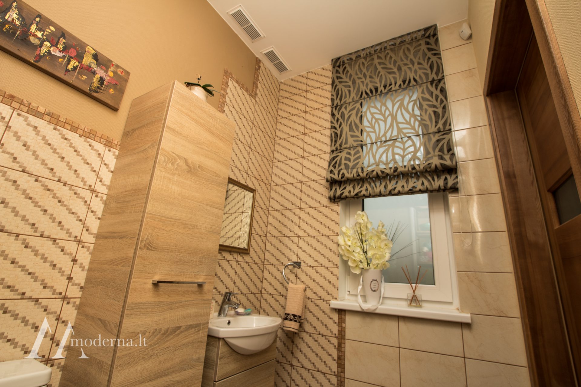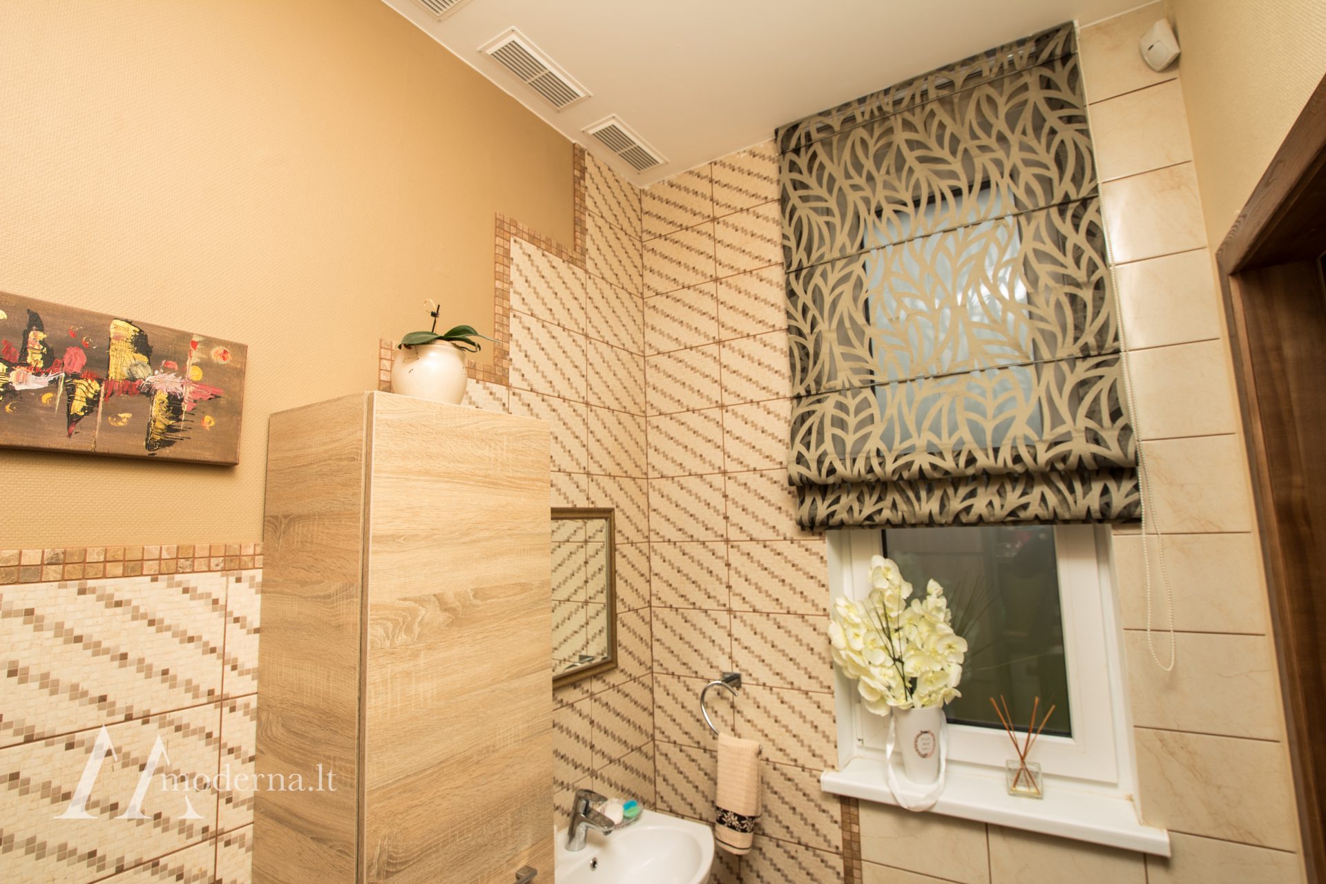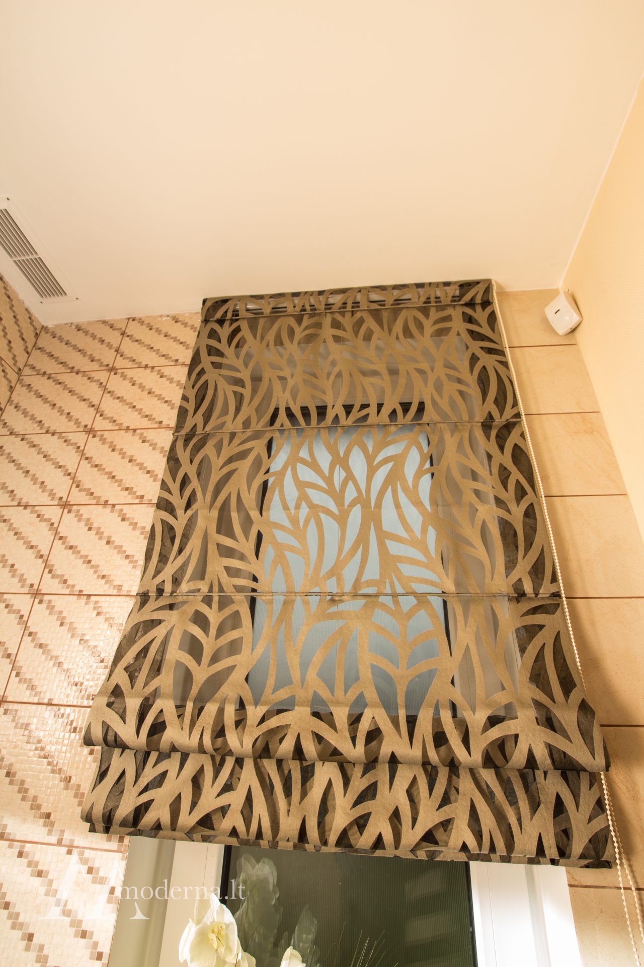 Vonios kambarį papuošė dekoratyvioji perregima, raštuota romanetė. Tai naujas audinys mūsų asortimente, kuris skirtas būtent romanečių gamybai.