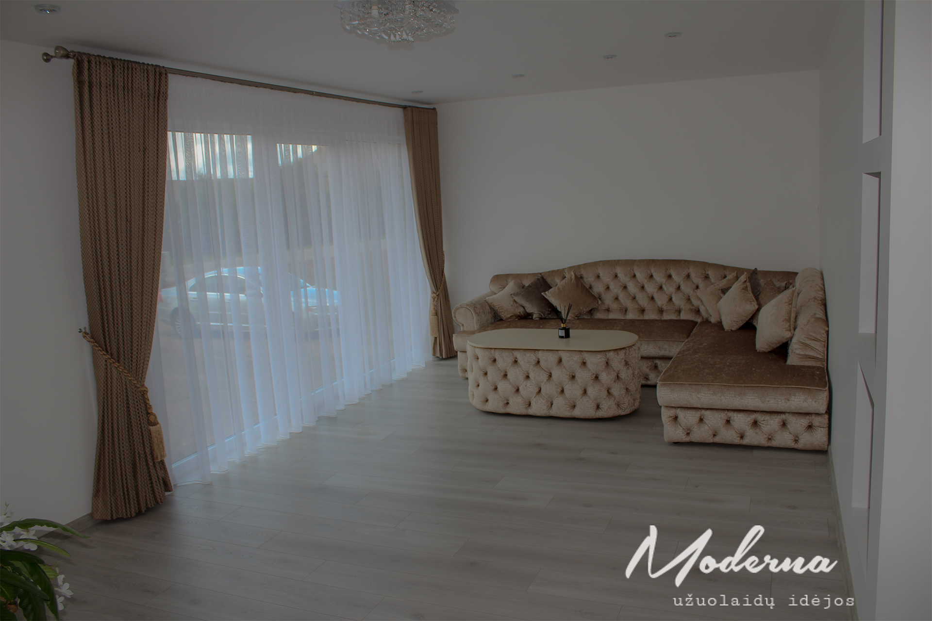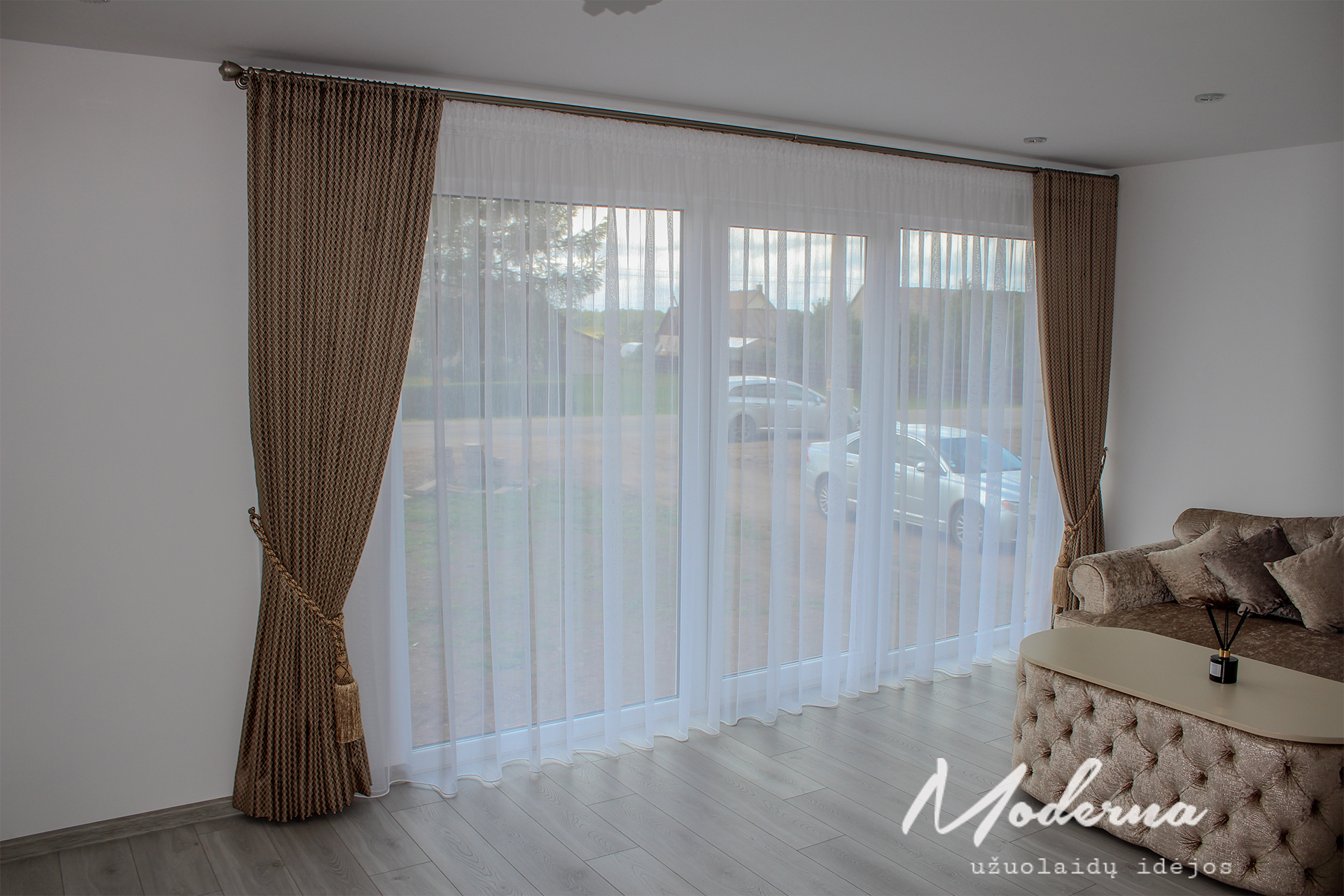 Pritaikyti audiniai, tobulos klostės bei užuolaidų parišimas kutais suteikia prabangos įspūdį.