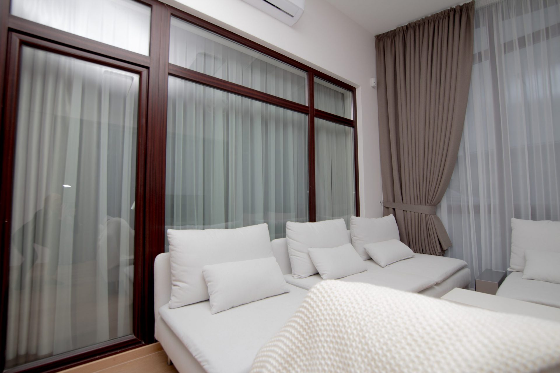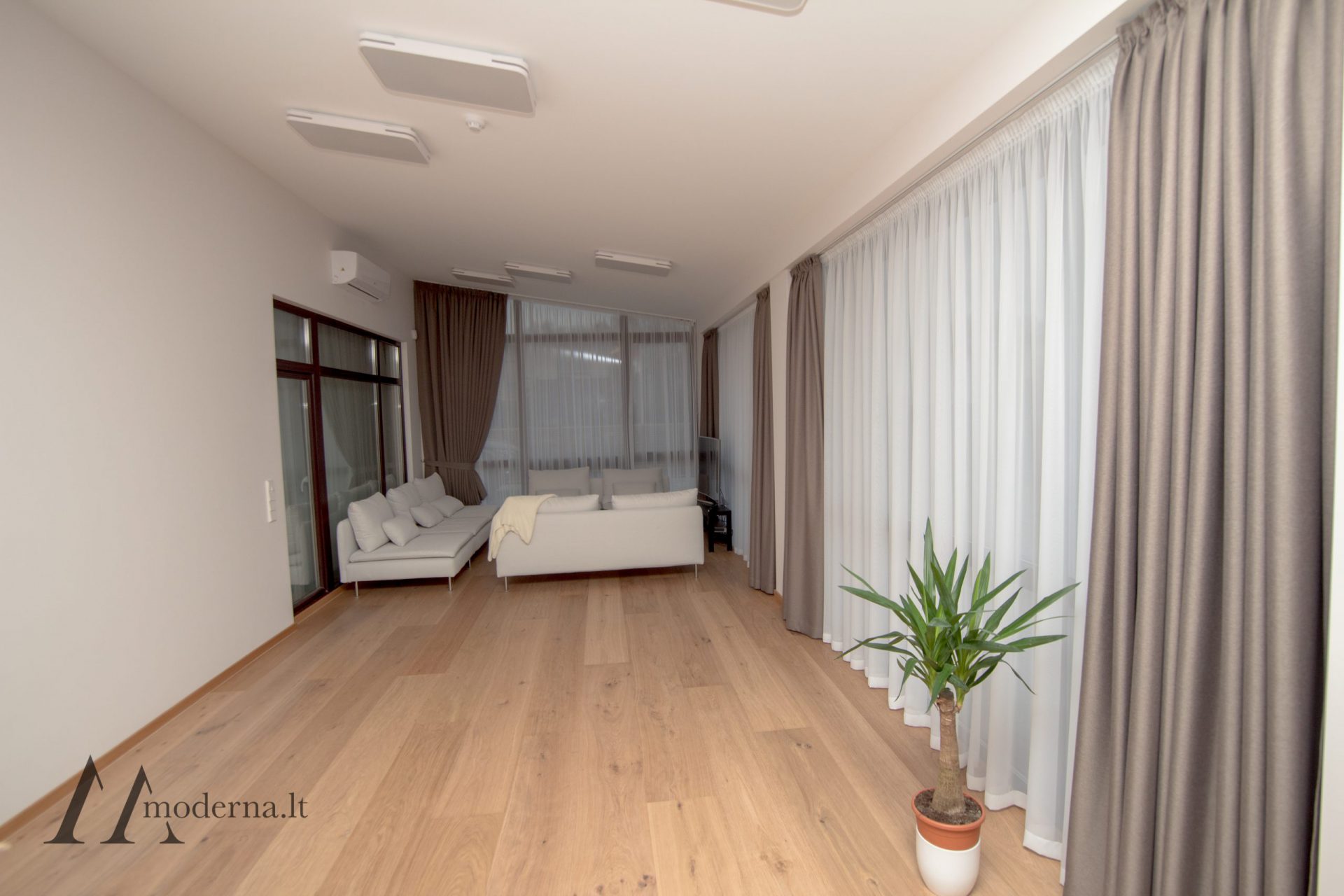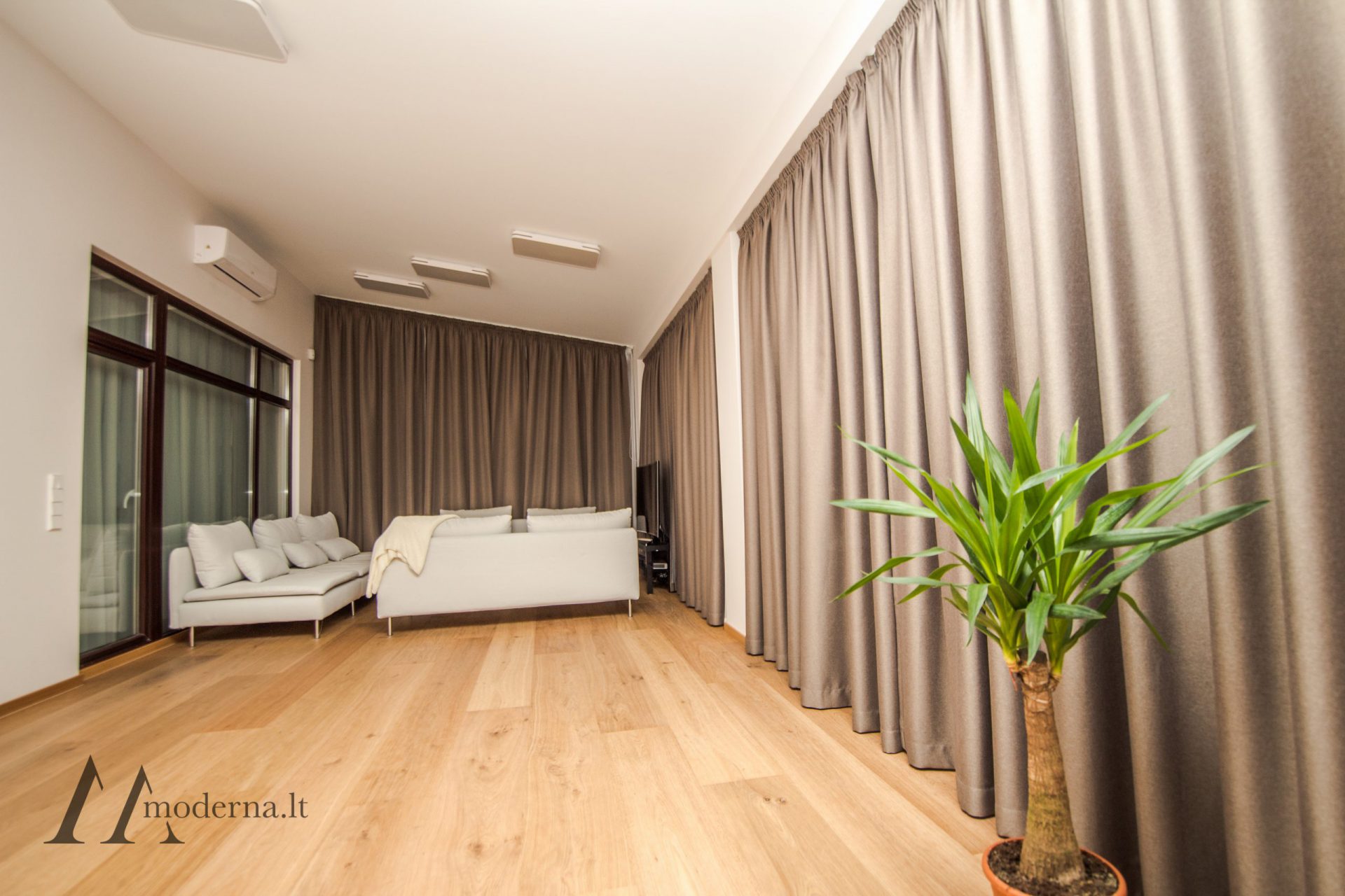 Užuolaidos erdvioje terasoje – jauku, prabangu, estetiška.